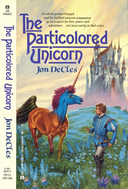 65192-5 JON DeCLES (aka DON STUDEBAKER) The Particolored Unicorn (cover by Darrell K. Sweet; c.1987; 2nd ACE edition; ACE fantasy)