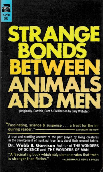 K-250 WEBB B. GARRISON (Dr.) Strange Bonds Between Animals And Men (original title: Codfish, Cats & Civilization; c.1955, 1956, 1957; 1966; 1st ACE printing)