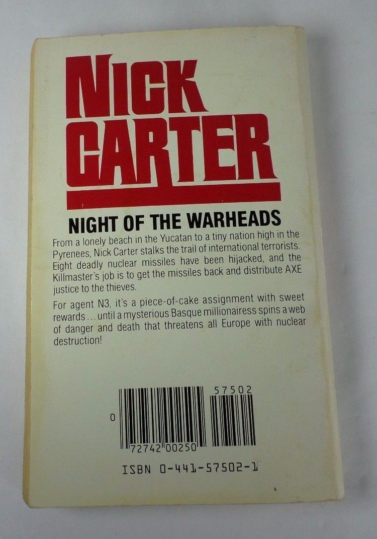 57502-1 NICK CARTER (house pseudonym for JACK CANON) Night of the Warheads: Killmaster #189 (cover by George Gross; 1984; 1st ACE printing - Charter imprint)