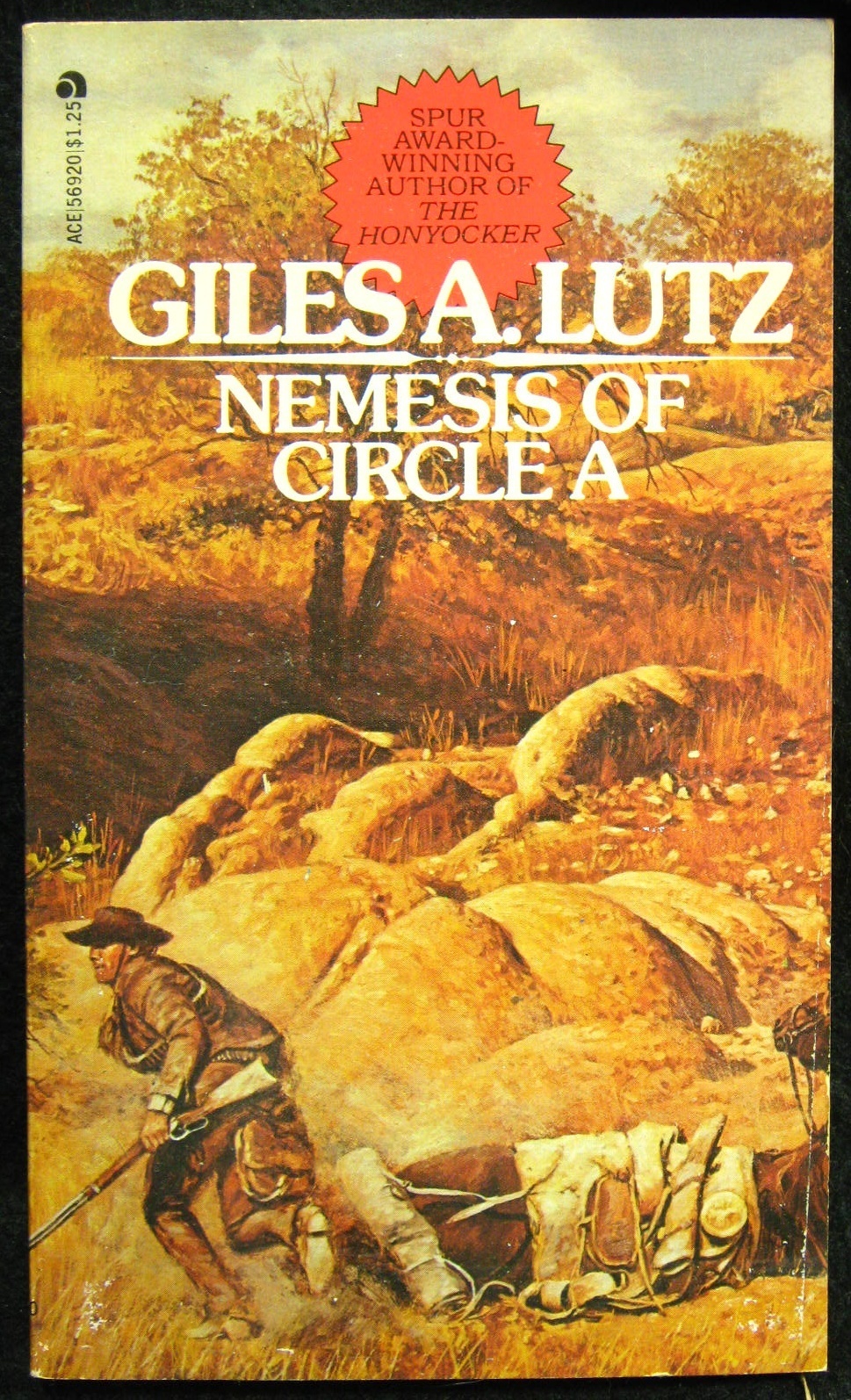 82432-3 NELSON NYE Trouble At Quinn's Crossing (wrap-around cover art; c.1971; 1976; March 1987; ACE Charter edition)