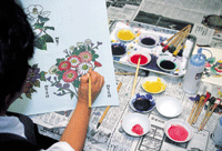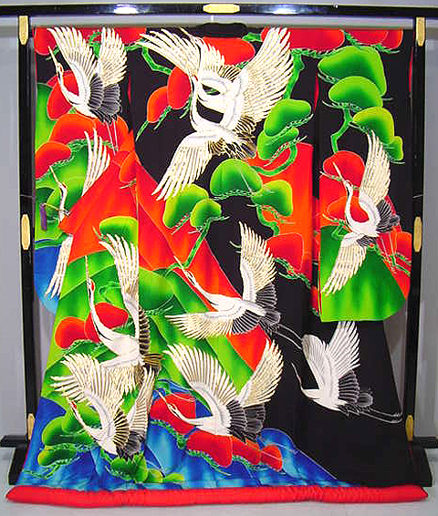 painted in beautiful colors and patters (especially foloralpatters) in Kimono. |