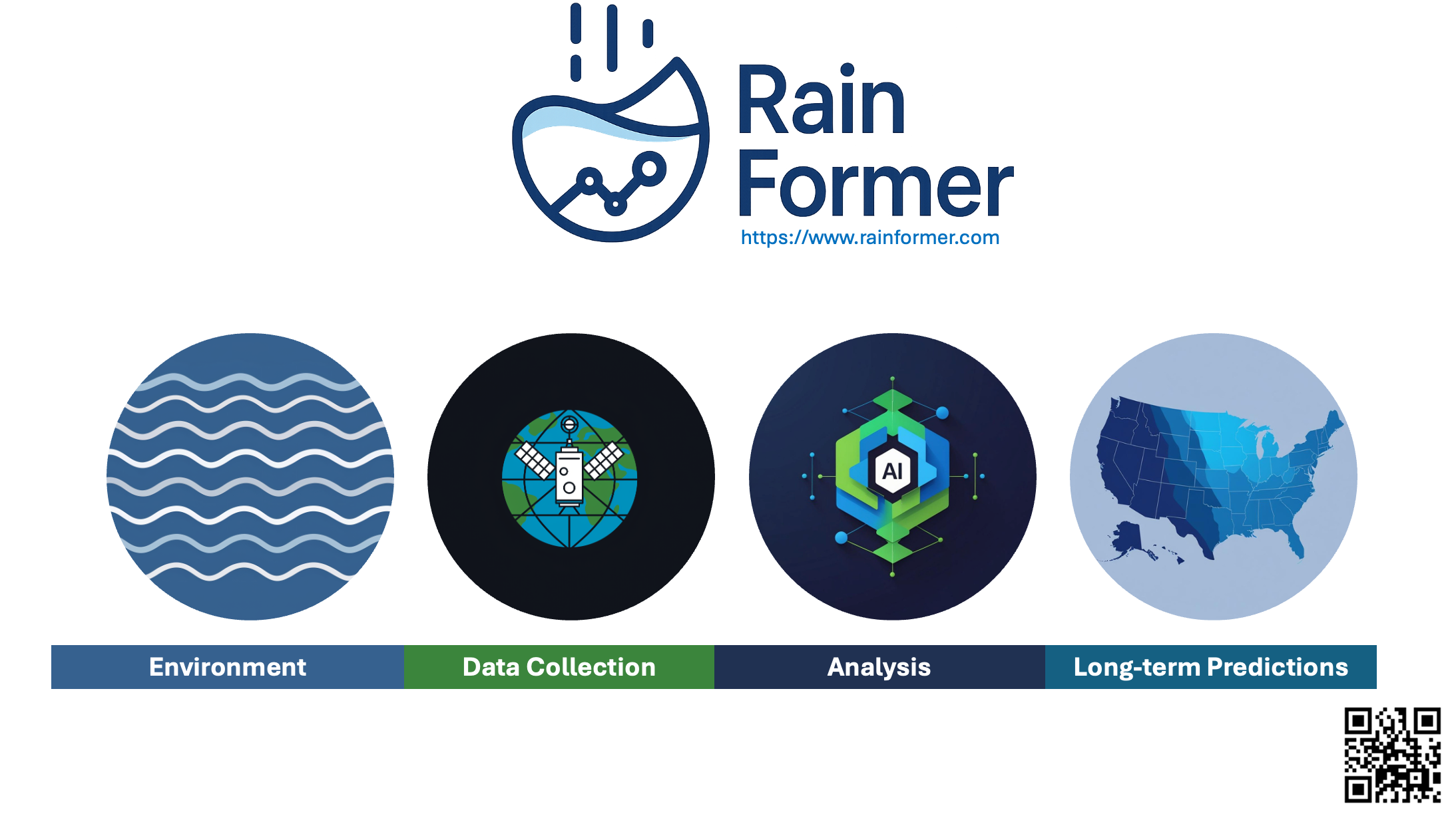 RainFormer is an AI-driven forecasting system designed to improve rainfall prediction at 2–6 week lead times. This subseasonal window represents a long-standing gap between traditional weather models and seasonal climate outlooks. By combining large-scale environmental observations with advanced pattern-recognition methods, RainFormer provides earlier and more reliable rainfall insights.