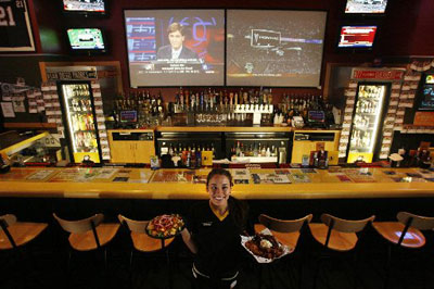 おもしろくて賑やかで美味しい手羽、および手羽の自家製ソースで有名です。 ここでは、アメリカのスポーツを見たりできます。